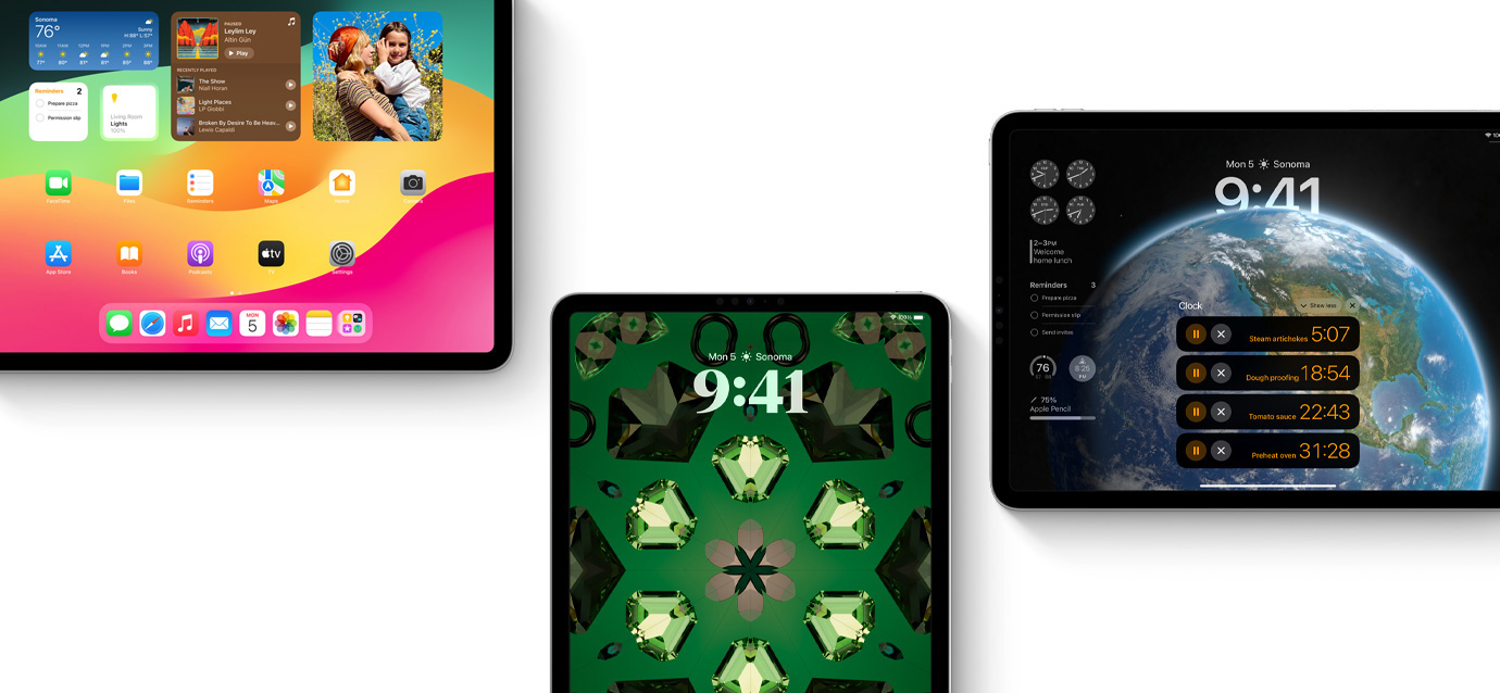 1.디스플레이는 모서리가 둥근 형태입니다. 직사각형 기준으로 측정했을 때, iPad Pro 12.9 화면은 대각선 길이 기준 32.77cm, iPad Pro 11 화면은 27.96cm, iPad Air 및 iPad 화면은 27.58cm, iPad mini 화면은